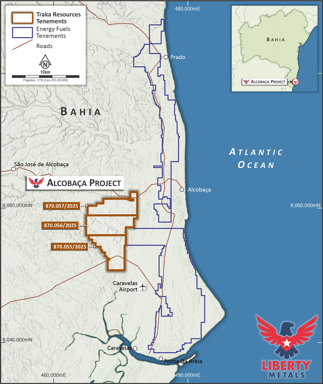 The Alcobaca HMS Project is located next to Energy Fuels’ Bahia HMS Project.